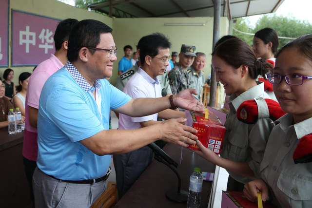 郑院长给军训新生分发解暑饮品