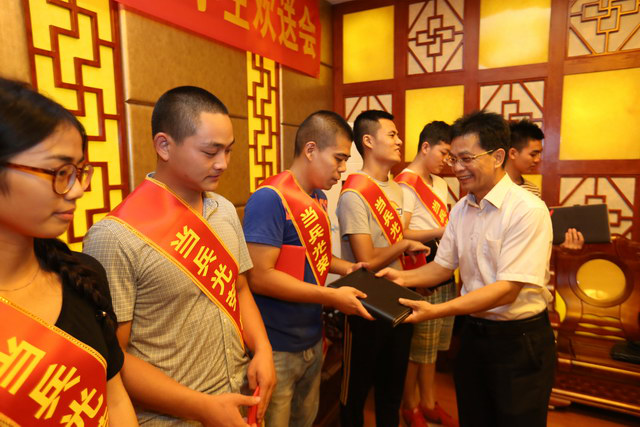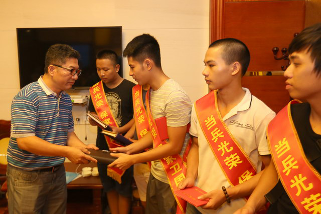 9月8日,明升体育882015年应征入伍学生欢送会在南湖校区举行。学校领导郑军里、赵焕春、韦俊平出席,青秀区武装部、西乡塘武装部领导、学校武装部、学生工作处、宣传部、各二级院系负责人参加了欢送会。