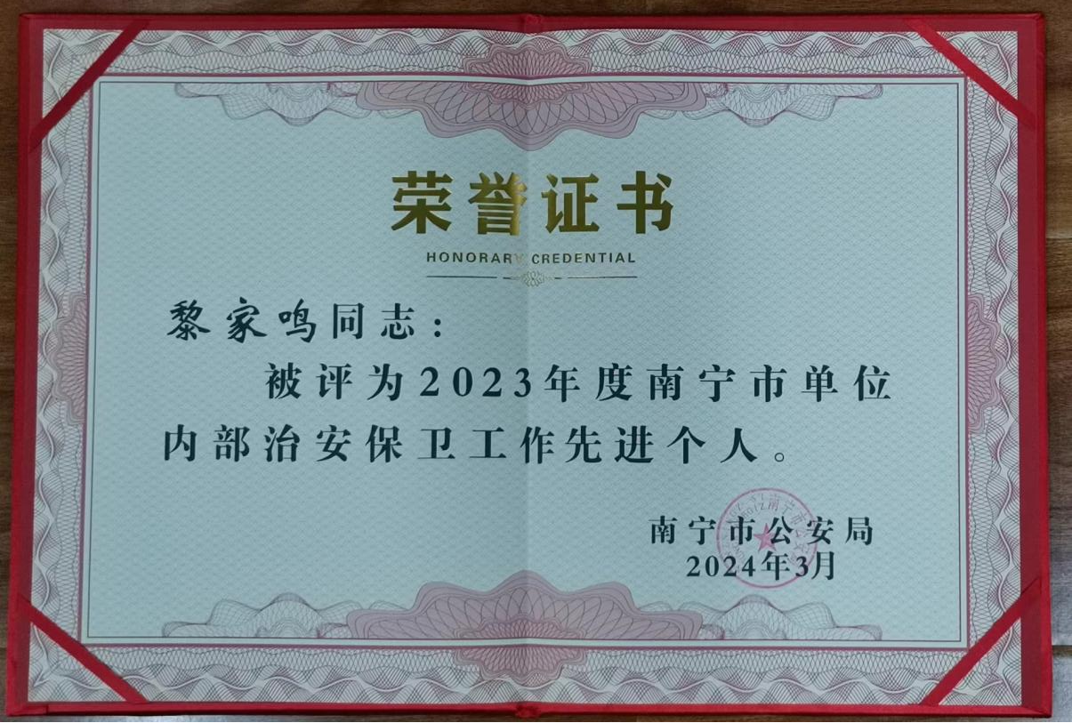 【喜讯】明升体育88明升体育88荣获“2023年度南宁市单位内部治安保卫工作先进集体”